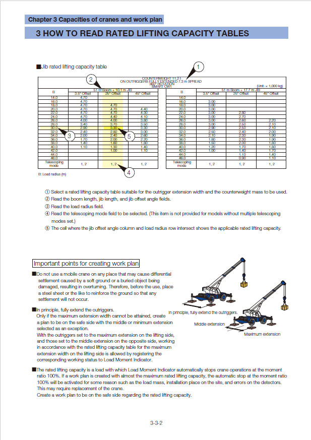 - Capacities of cranes and work plan